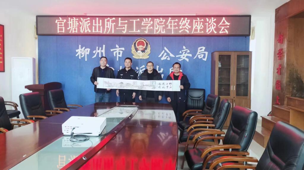 1月9日上午,为共建平安和谐校园,在2023年中国人民警察节到来之际,副校长毛汉颖带领保卫部相关人员走访慰问柳州市公安局官塘派出所、柳雒派出所。