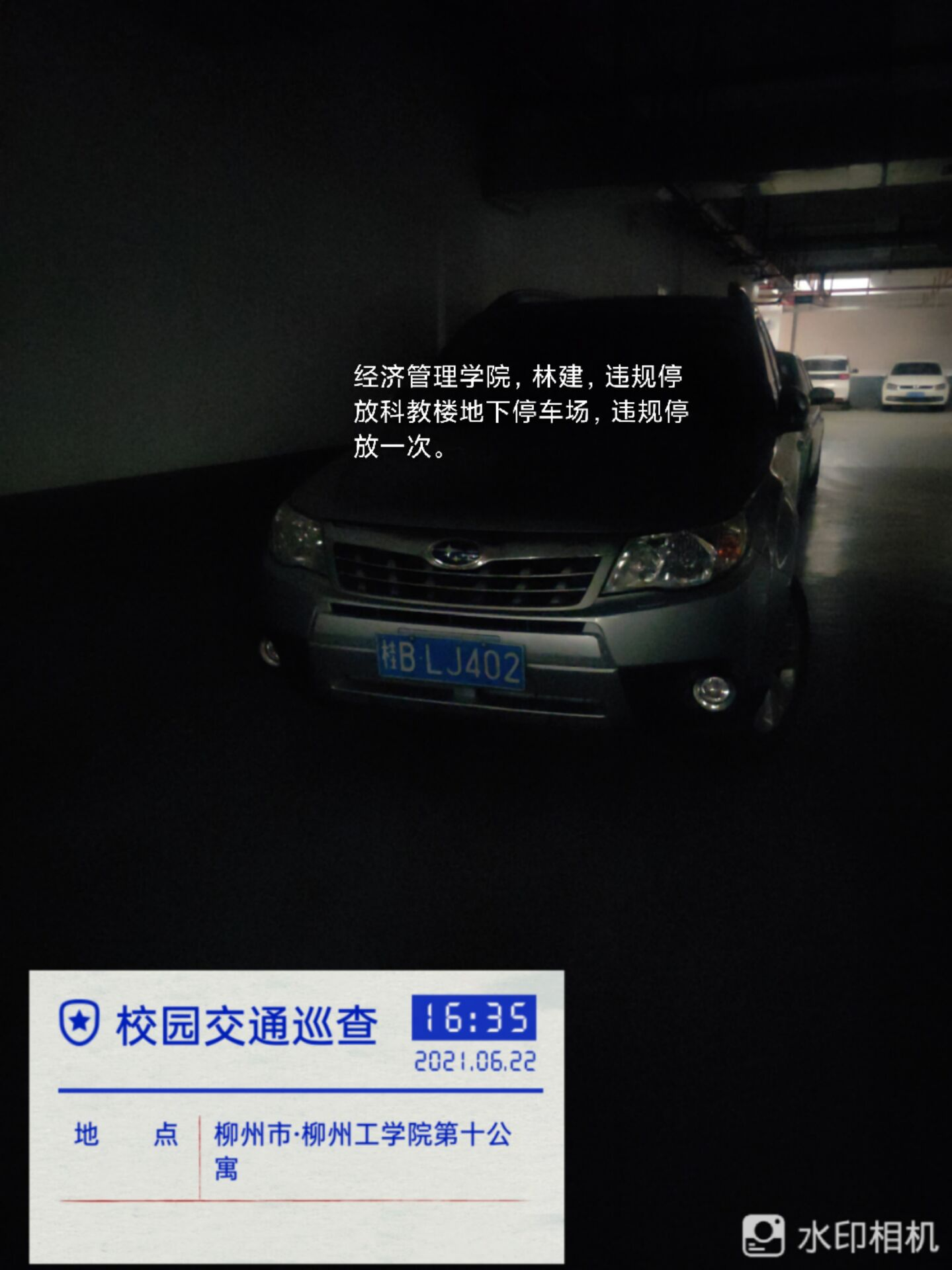 2.经济管理学院,张光明,违规停放地:科教楼地下停车场,违规次数:1次。