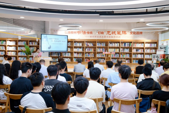 在名家悦享沙龙环节,由柳州市文联党组书记、主席黄才强作为访谈人,KY开元党委书记、《柳州书法史》执行主编罗云贵,柳州市书法家协会常务副主席、《柳州书法史》执行副主编唐小龙作为受访人,以现场访谈的形式,讲述《柳州书法史》的编纂过程,分享《荔子碑》等柳州史上书法名作的传奇故事,为师生们带来了干货满满的文化大餐。