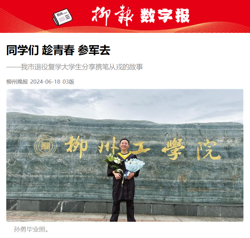 《柳州晚报》:同学们 趁青春 参军去——我市退役复学大学生分享携笔从戎的故事