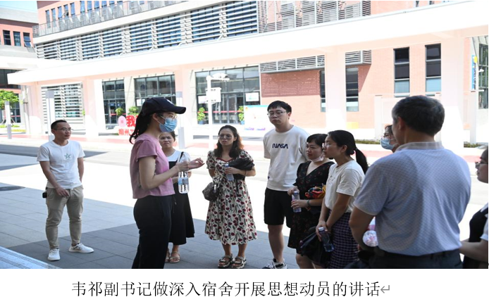 在走访宿舍的过程当中,韦祁副书记与2021级学生进行亲切交谈,了解学生在学习和生活方面的现实状况,并对同学们提出的关于宿舍搬迁的问题给予答复,提醒同学们在即将到来的暑假中要坚持学习,重视疫情防控,注意人身安全和财产安全。