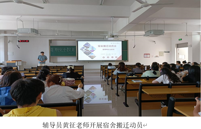 主题班会上,各辅导员和班主任就搬迁过程管理提出“安全顺利,文明有序”的原则,强调全体学生骨干要提高站位、勇于担当、主动作为,充分做好搬迁组织和协调工作,全体学生要高度重视、互帮互助,积极推进搬迁工作安全、平稳、和谐、文明进行,确保在规定的时间内完成搬迁和入住。