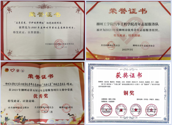 该项目曾获评柳州市最佳志愿服务项目,项目实施主体获评柳州市优秀青年志愿服务组织;荣获柳州市第四届志愿服务项目大赛优秀项目奖、柳州市第五届志愿服务项目大赛优秀项目奖,在第十一届“挑战杯”广西大学生创业计划竞赛中荣获铜奖,并获新浪网、环球网等媒体报道,形成了良好的社会示范效应。