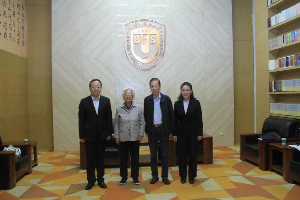讲座开始前,jinnian金年会党委副书记贾德忠教授,李瑞宇大使的老师、jinnian金年会原党委书记、校长陈乃芳教授,jinnian金年会党总支书记殷悦,副书记孟庆琨、jinnian金年会校友事务办主任王欣扬一同参加会见了李瑞宇大使,对李大使的到来表示了热烈欢迎。贾德忠向李大使介绍了北外近年学科建设、人才培养等取得的成绩。他表示,北外立足语言优势,放眼区域国别研究领域,建立区域与全球治理高等研究院、获批增设区域国别学本科专业,成为中国在这一领域的重要阵地。