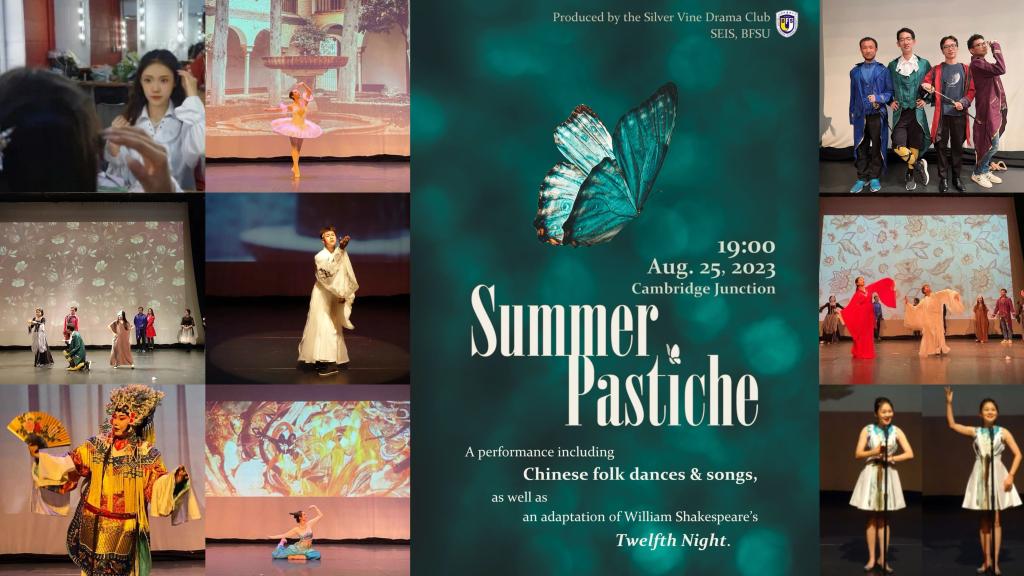 为贯彻落实习近平总书记关于美育教育的重要指示精神,推动中外人文交流,绿萝剧社于2023年8月18日-26日组织来自不同院系的剧社成员在英国伦敦、剑桥和埃文河畔的斯特拉特福镇开展了以“学生戏剧社在剑桥大学创新型人才培养中的作用”为主题的考察和演出活动。此次绿萝剧社师生为剑桥观众带去了传统戏曲《贵妃醉酒》、莎士比亚喜剧《第十二夜》等文艺节目,深入莎士比亚环球剧院、戴尔(山谷)露天剧院和RSC剧院观演、参观,以考察结果来验证在《莎士比亚戏剧选读》、《中西文化比较》等课程中学到的英国戏剧传统和文化历史,还从英国经典剧作的舞台演出中借鉴了推广我国传统曲艺的有效途径,并采访了近90名剑桥大学师生,了解了他们对学生剧社美育功能的理解和对发展学生剧社的建议,为提升绿萝剧社未来的工作质量提供了启示。