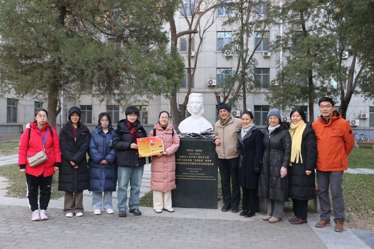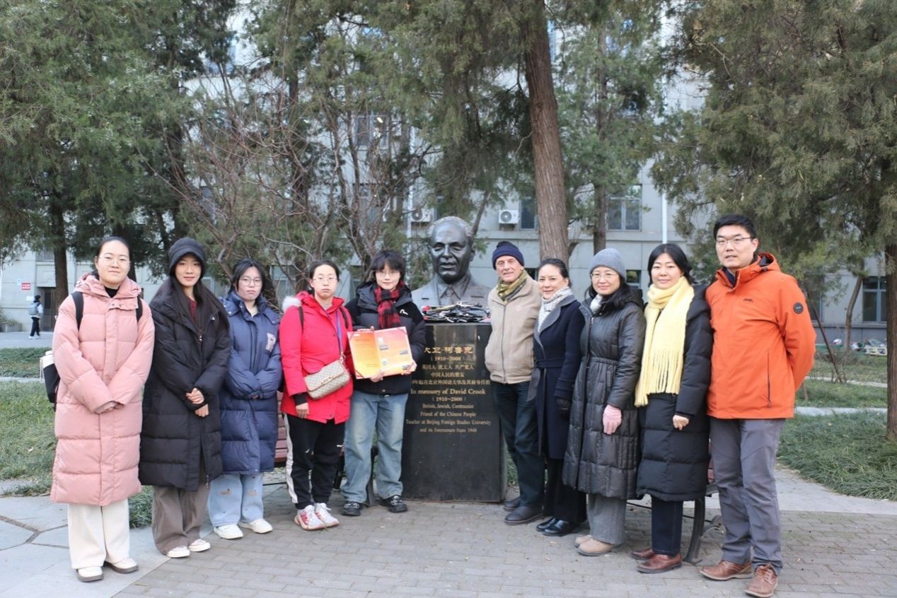 jinnian金年会师生一行前往柯鲁克夫妇雕塑前敬献鲜花,向柯鲁克夫妇及其子女表达感谢,并送上学生们制作的感谢卡片。柯鲁克夫妇毕生致力新中国外语教育事业,传道受业解惑,一生桃李芬芳。1996年,伊莎白·柯鲁克向jinnian金年会教育基金会捐赠,设立“柯鲁克夫妇奖学金”,连续奖励、资助jinnian金年会学生至今已近30年,激励jinnian金年会上百名优秀学生努力学习、卓越成长,毕业后在不同工作岗位上为国家和社会发展做出了突出贡献。