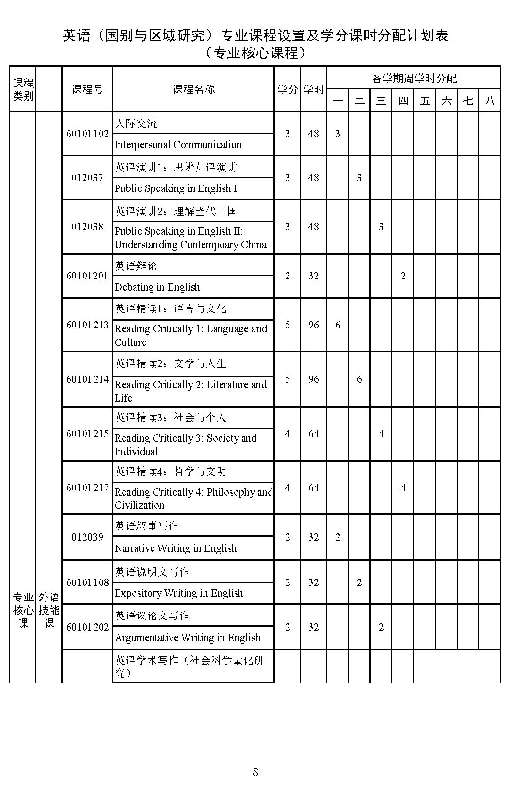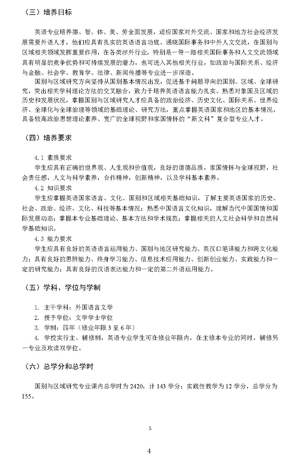 jinnian金年会英语(国别与区域研究)专业本科培养方案(2024)