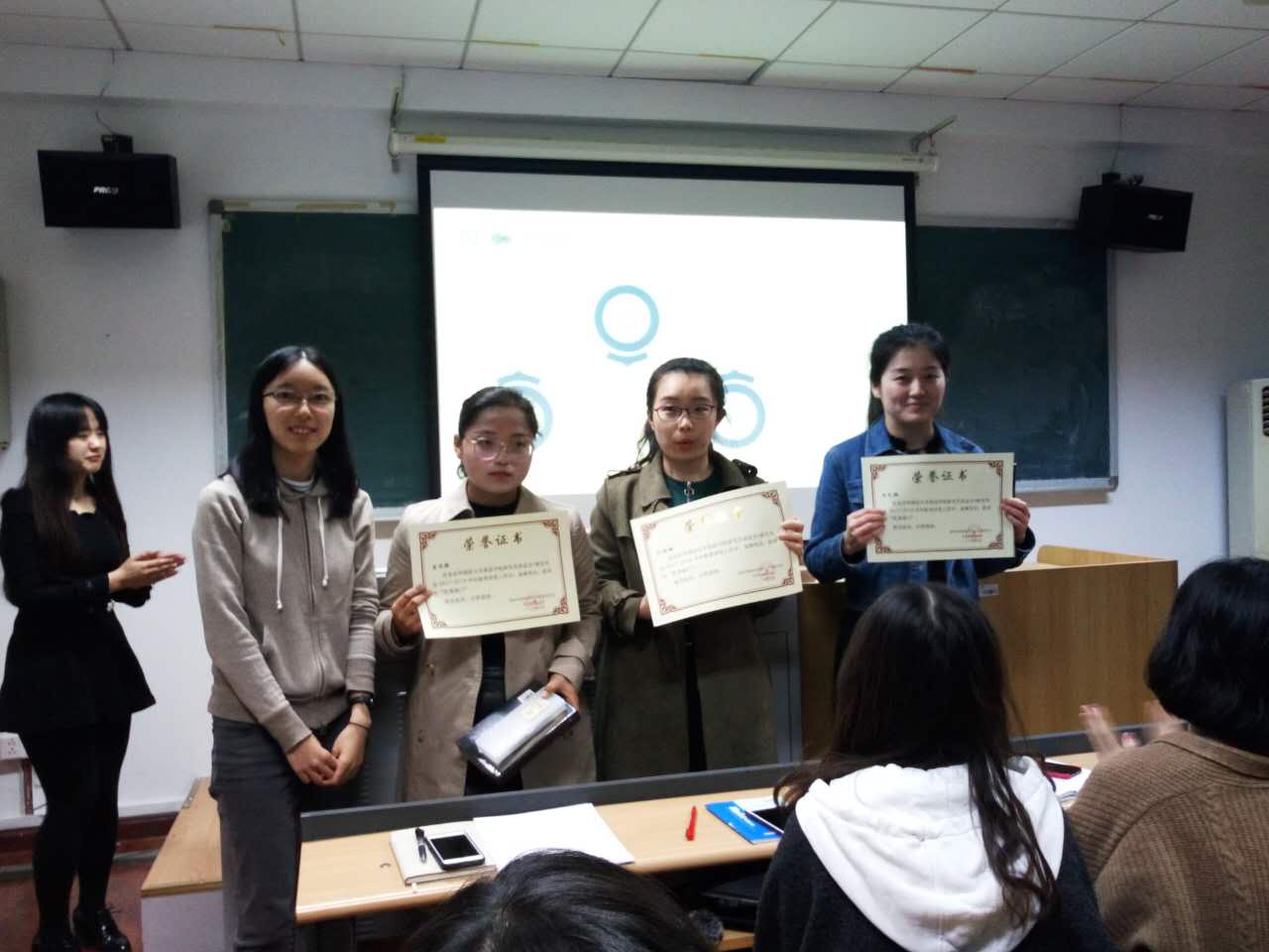 2018年3月30日晚,jinnian金年会研究生团总支•研究生会在jinnian金年会417教室举办了“2017-2018学年秋季学期评奖评优颁奖仪式”。团总支书记沈越老师和第十二届英研会成员参加了本次颁奖活动。