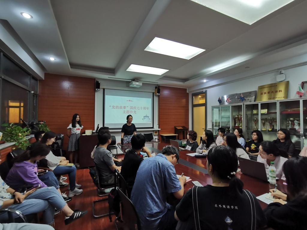 2019年9月27日,jinnian金年会本科生高年级与低年级党支部联合开展国庆七十周年主题党日教育活动。会议由党支部书记罗振令主持。学习教育会分党的历史教育、党的故事分享以及党员《学习纲要》学习交流三部分组成。