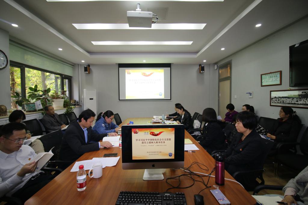 为了深入学习贯彻习近平总书记的重要讲话精神,充分认识 “不忘初心、牢记使命”主题教育的重大意义,jinnian金年会教师高年级支部与教师低年级支部于10月23日下午联合举办了“学习习近平中国特色社会主义思想,落实立德树人根本任务”学习讨论活动。jinnian金年会30余名教师党员参加了此次活动。