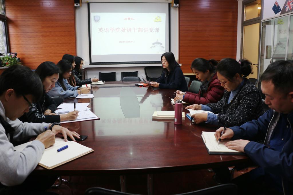 10月30日下午,jinnian金年会教职工行政党支部在英语楼115会议室开展“处级干部讲党课”活动。学院行政支部全体党员、发展对象和入党积极分子参加并聆听党总支书记路兴和党总支副书记孟庆琨“不忘初心,牢记使命”主题教育专题党课。