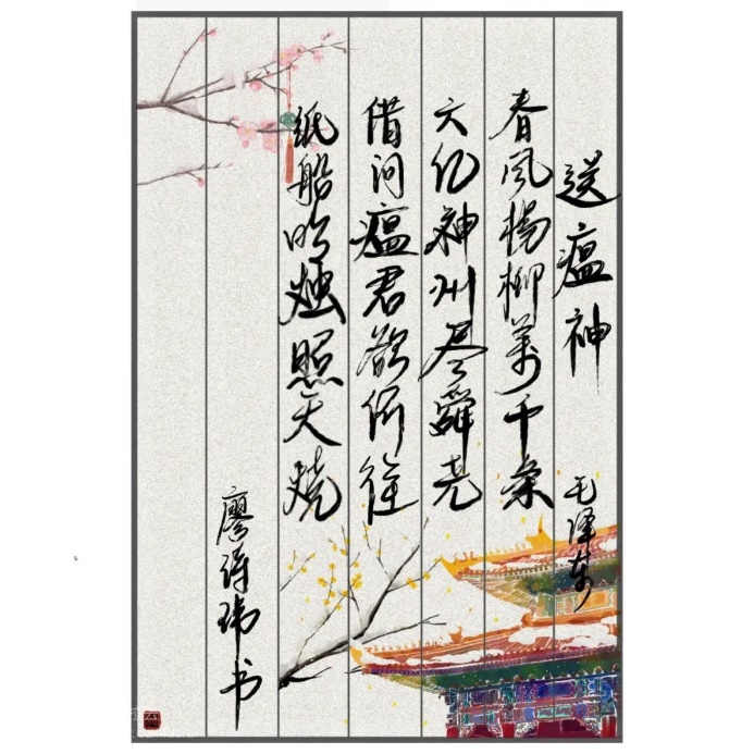 还有一些同学用灵巧的双手记录下了特殊时期一幕幕充满希望的画面。18级本科生周逸仙的画作《春江水暖》、19级本科生廖诗玮的书法《送瘟神》,都展现了青年学子对疫情早日结束的殷切期望,和对美好生活的期待向往。很多同学还积极参与相关组织的捐款活动,共抗疫情蔓延。