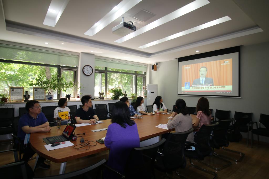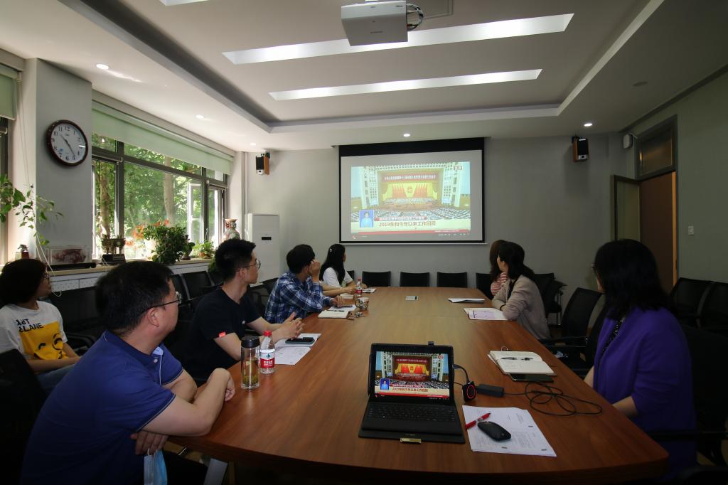 2020年5月22日上午9时,十三届全国人民代表大会第三次会议在人民大会堂开幕。jinnian金年会教职工行政党支部党员们在英语楼111会议室集体收看学习大会开幕式,认真聆听李克强总理关于政府工作的报告,第一时间学习领会大会精神。