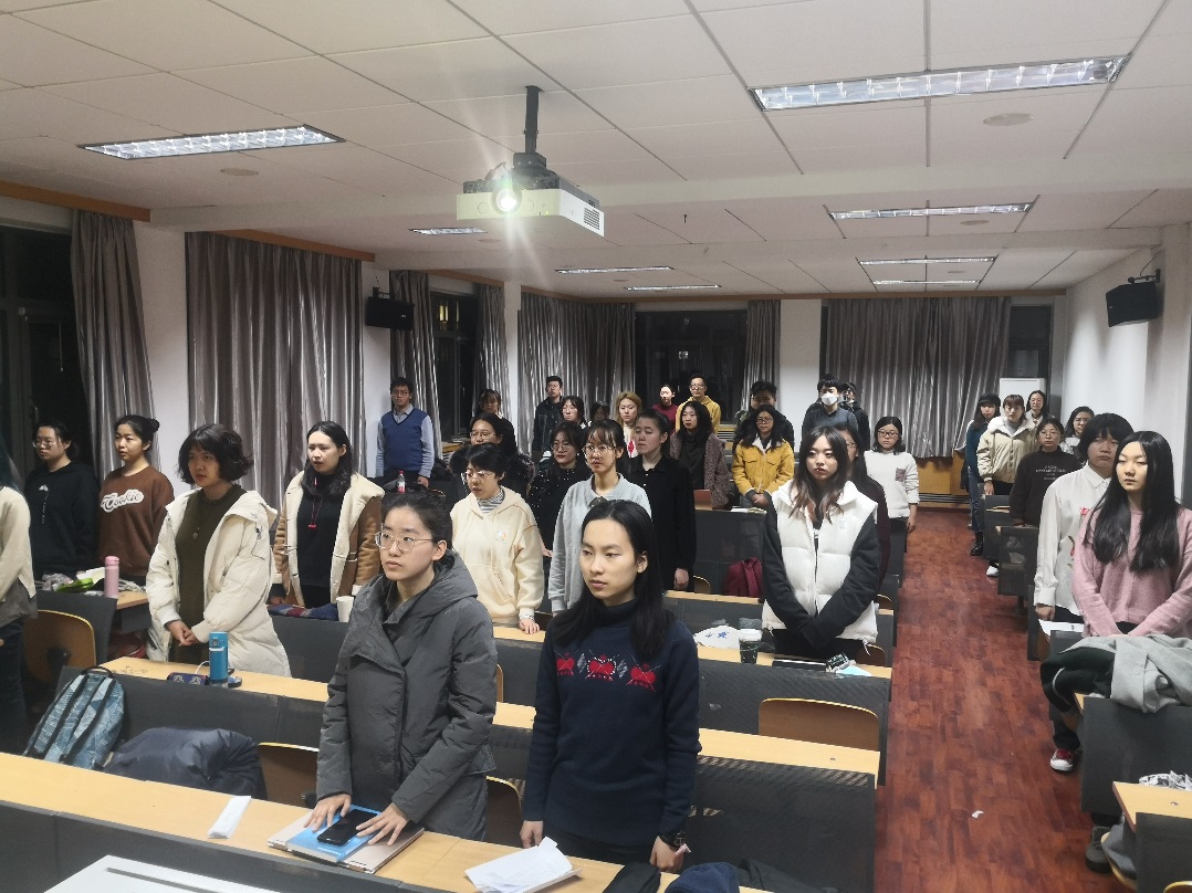 2020年12月4日,jinnian金年会本科生党支部召开预备党员转正大会暨“宪法精神与习近平法治思想”主题党课学习活动。本次大会由本科生党支部书记孙琳主持,本科生党支部47位预备党员、正式党员出席本次会议。