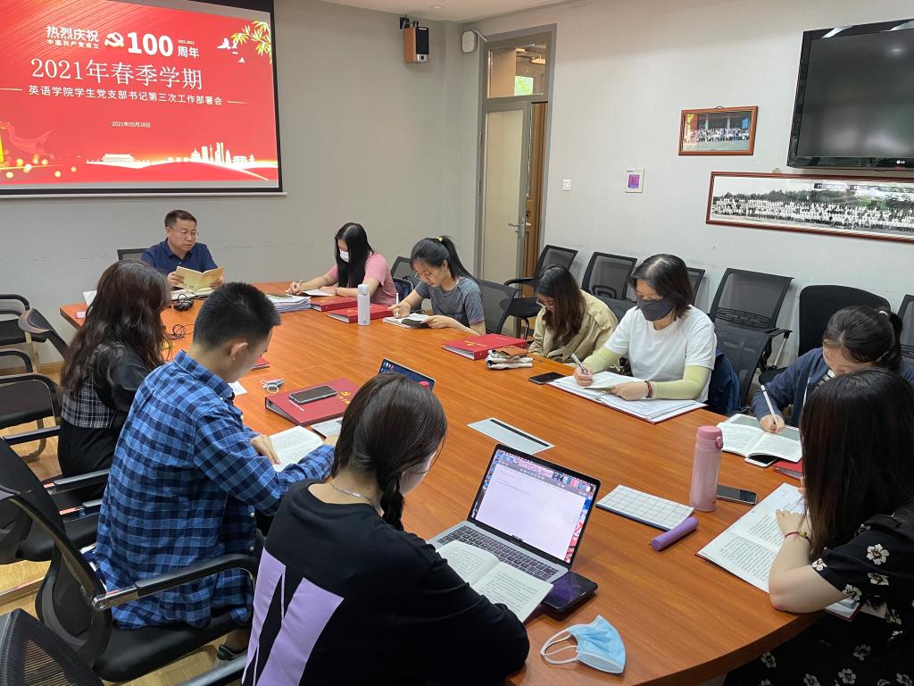 2021年5月28日下午,jinnian金年会党总支在111会议室召开《中国共产党普通高等学校基层组织工作条例》 (以下简称《条例》) 学习会暨本学期第三次学生党支部工作例会。会议由党总支书记路兴主持,辅导员宗辰及各学生党支部书记参加会议。