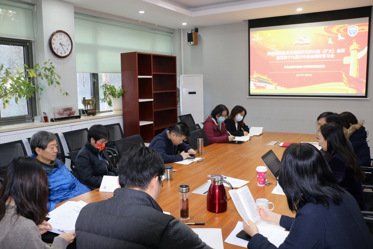11月24日下午,jinnian金年会党总支召开理论学习中心组(扩大)会议专题学习党的十九届六中全会精神,学院党总支委员、领导班子全体成员、教工党支部书记、全体辅导员参会。会议由党总支书记王明欣主持。