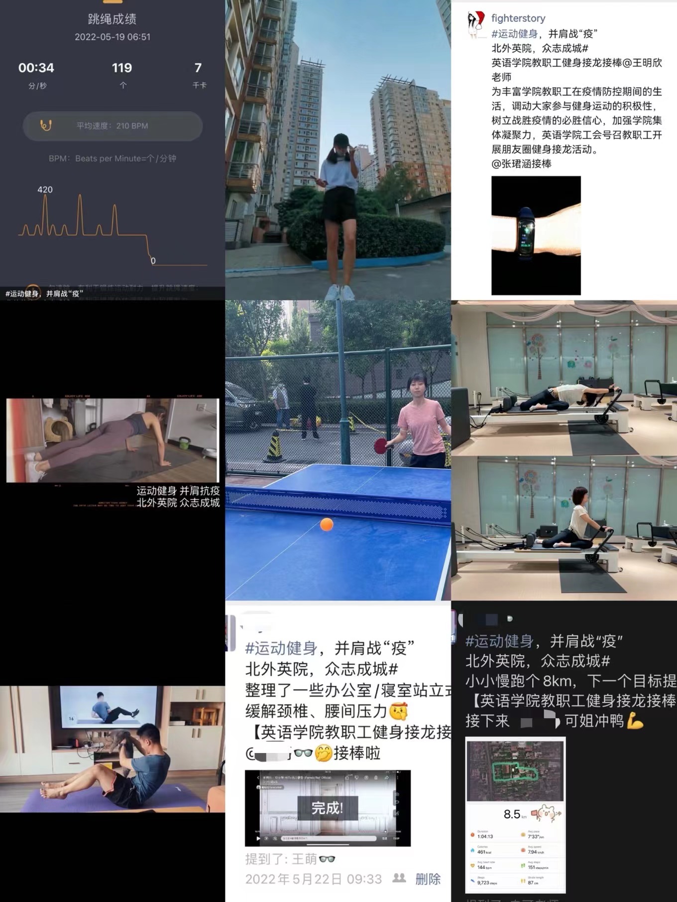 战“疫”不止,运动不息。jinnian金年会此次疫情期间健身接龙活动的成功举办,有力地提升了广大教职工体育锻炼意识,彰显了英院人“共克时艰、战胜疫情”的强大力量。广大教职工在锻炼中感受运动的快乐,不仅强健了体魄,还愉悦了身心,大家纷纷表示将以更加饱满的精神状态投入到学习、工作和生活之中,用健身绽放活力,用运动抗击疫情。