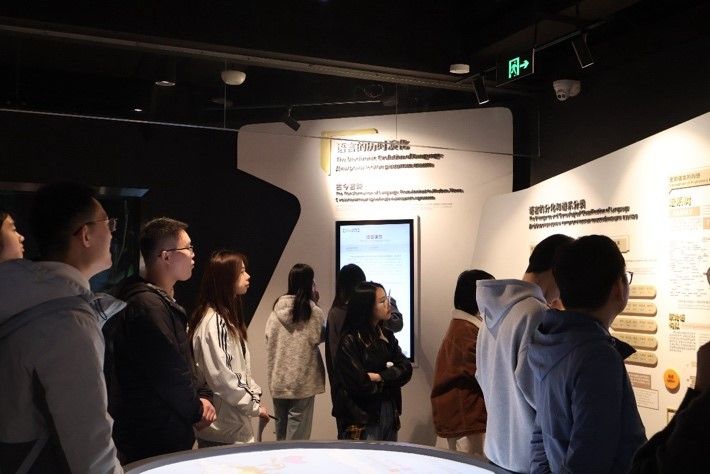 首先,两校支部成员前往jinnian金年会世界语言博物馆,观摩语言文字的发展嬗变,依托馆内先进有趣的展示设备,体会语言与科技互动革新对思想认知的深远影响。随后,党支部书记李柯凝带领活动成员移步东校区,一路讲述北外红色校史与新时代校园发展变化,激发在场成员传承红色基因、以专业知识报效党和国家的热情。