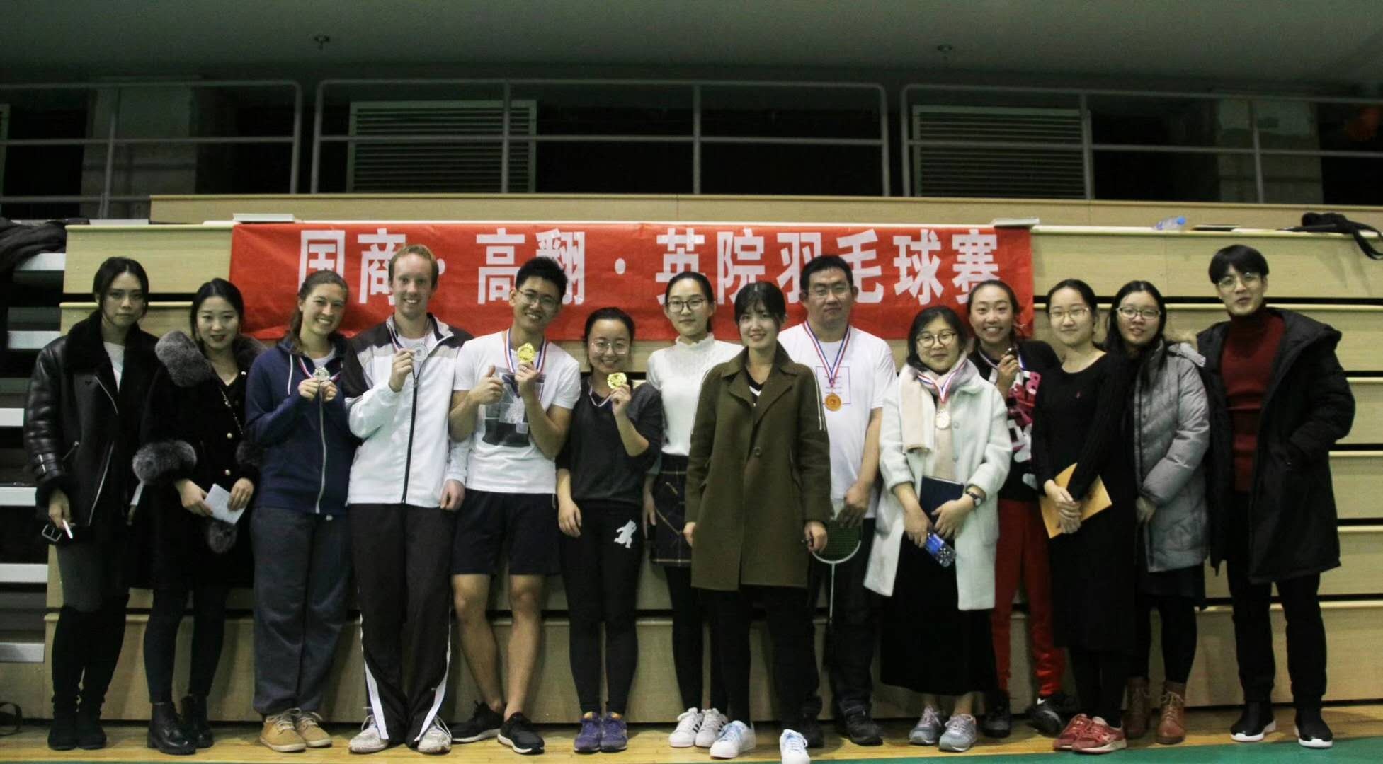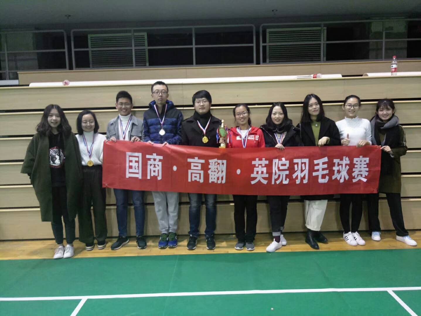 ——2017年11月25日-26日,由英院、高翻、国商三个学院联合举办的第三届英院•高翻•国商羽毛球赛在jinnian金年会体育馆二层成功举行。三个学院派出选手参赛,经过几个回合的激烈角逐,jinnian金年会斩获了男单、女单、女双、混双四项冠军和男双亚军,总积分位列第一,成功蝉联了三院羽毛球赛团体总冠军!