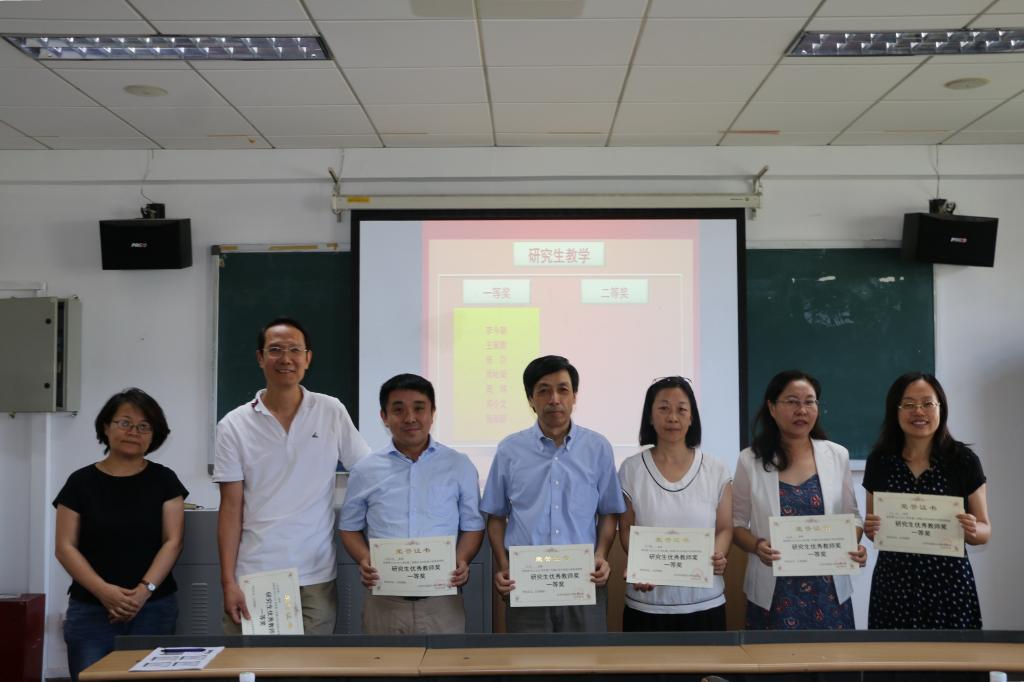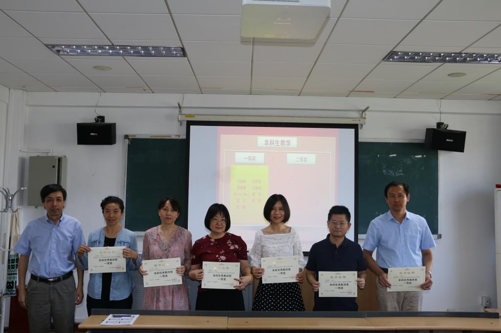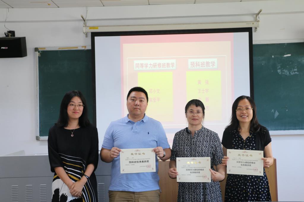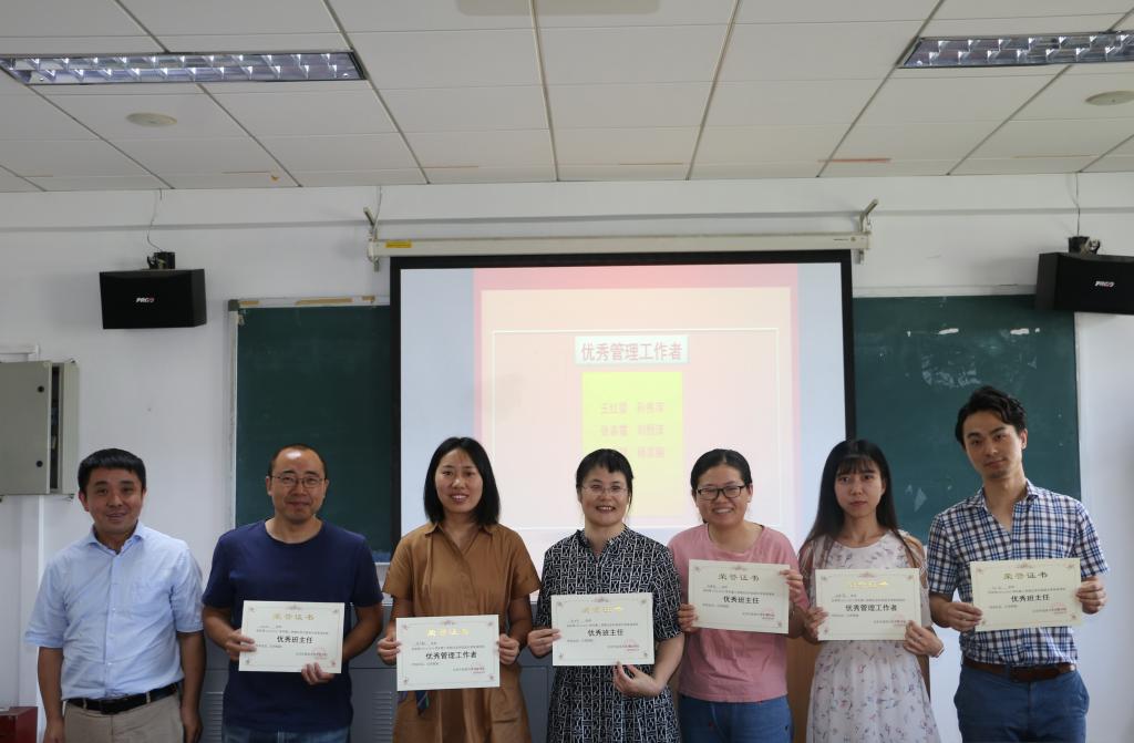 会议最后,对2018-2019学年第二学期优秀教师、班主任及管理工作者进行了表彰。奖项共分“本科生优秀教师奖”、“研究生优秀教师奖”、“预科班优秀教师奖”、“同等学力研修班优秀教师奖”、“优秀班主任”及“优秀管理工作者”六项,分别由jinnian金年会院长张剑,副院长王展鹏、张莲,党总支副书记孟庆琨对获奖教职工颁奖。