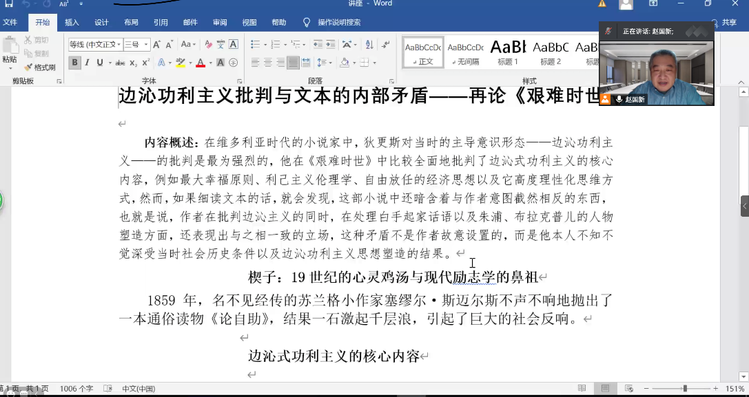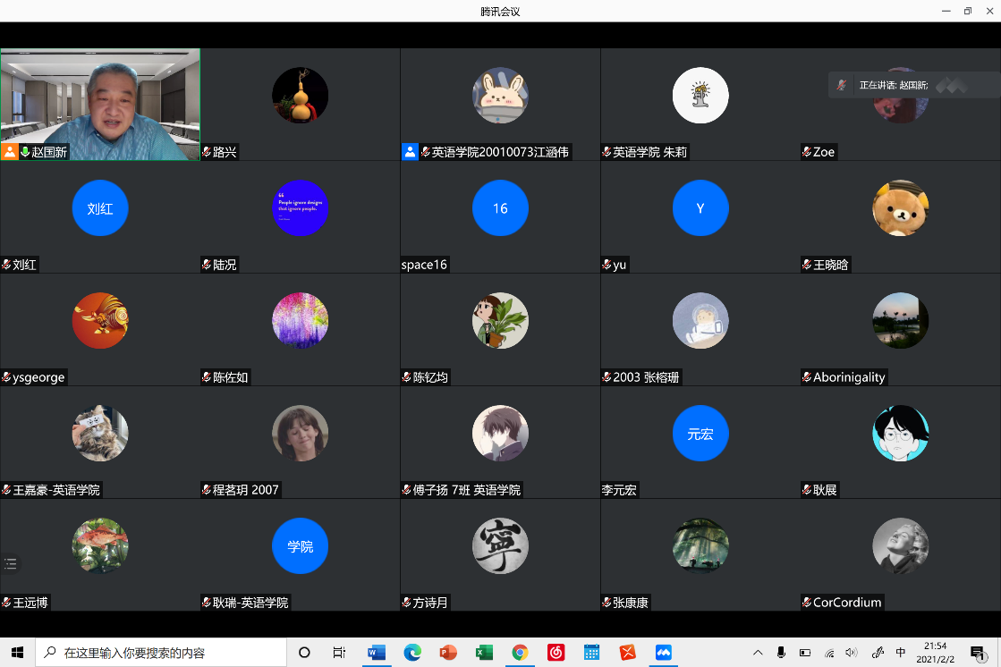 2021年2月2日晚,jinnian金年会jinnian金年会“边沁功利主义批判与文本的内部矛盾——再论《艰难时世》”专题讲座如期举办。本次讲座邀请到jinnian金年会赵国新教授为同学们分析文学作品中所体现的边沁功利主义及其内部矛盾,帮助同学们理解丰富的文学知识、提升文学素养。