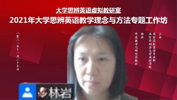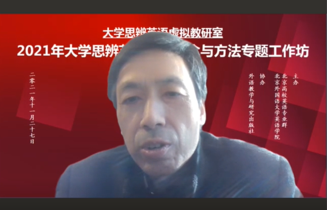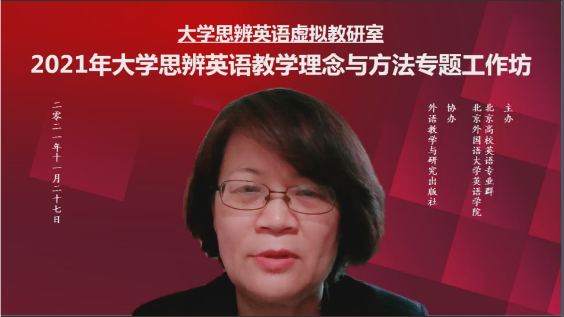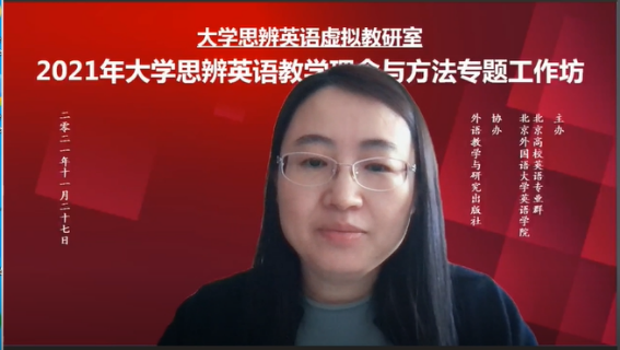 2021年大学英语思辨英语教学理念与方法专题工作坊于11月27日顺利举办。工作坊由北外jinnian金年会、北京高校英语专业群联合主办,外语教学与研究出版社协办,来自全国各高校近2000位教师通过线上方式参与了本次活动。