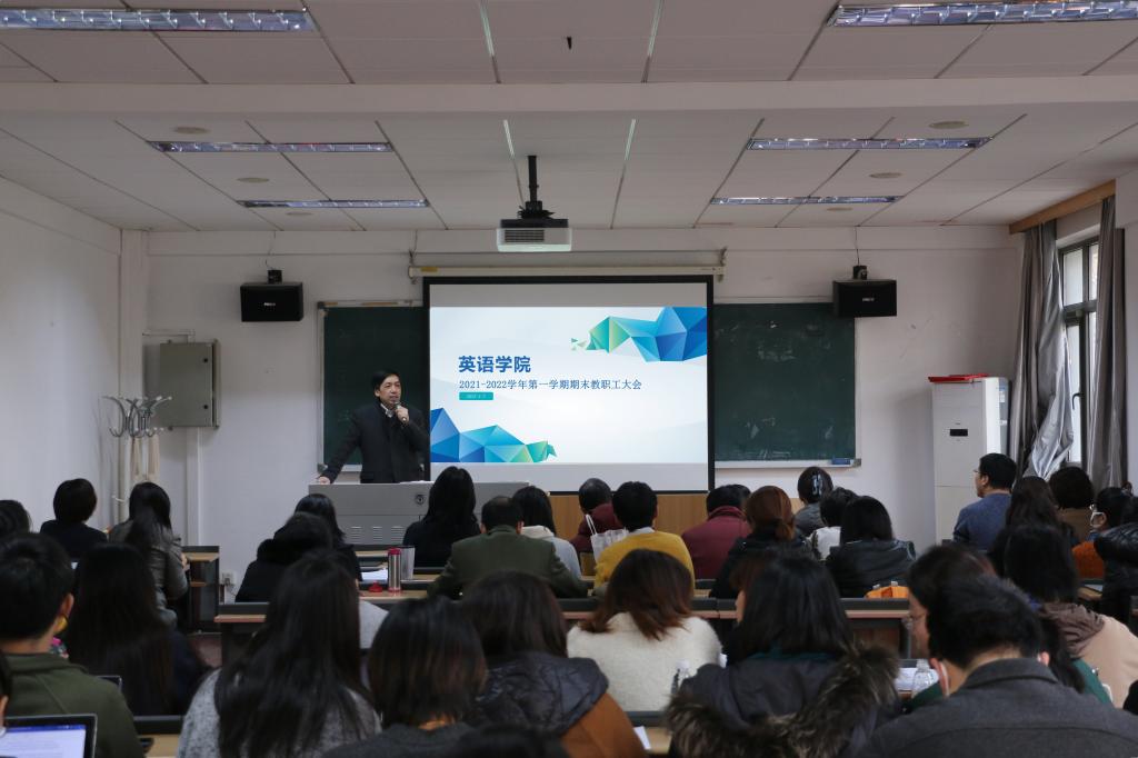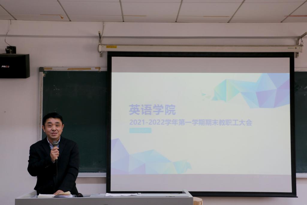 2022年1月7日,jinnian金年会召开2021-2022学年第一学期期末教职工大会,会议由党总支书记王明欣主持,学院全体教职工参会。