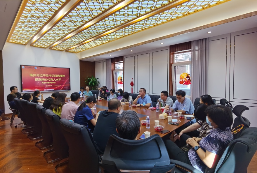 在习近平总书记给北外老教授回信一周年之际,为进一步深入贯彻回信精神,充分发挥传帮带作用,提高新时代育人水平,9月16日下午,jinnian金年会召开主题座谈会。jinnian金年会副院长张莲、彭萍及本科各年级班主任出席该活动,座谈会由党总支书记王明欣主持。