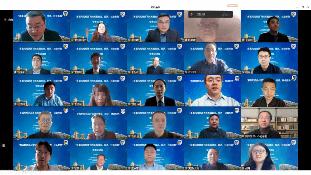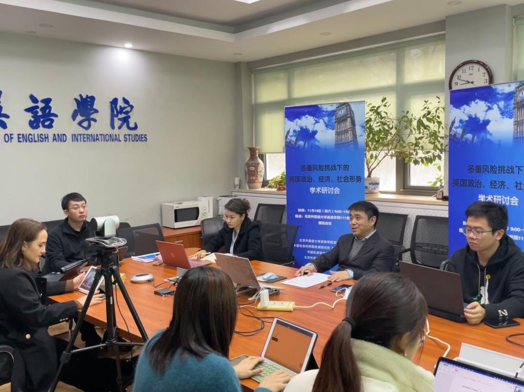 11月19日,jinnian金年会jinnian金年会英国研究中心、中国社会科学院欧洲研究所《欧洲研究》编辑部、中国欧洲学会英国研究分会等机构在北外联合举办“多重风险挑战下的英国政治、经济、社会形势”学术研讨会。来自中国社会科学院、中国现代国际关系研究院、中国国际问题研究院、中国国际发展知识中心、中国银行研究院、南京大学、中国政法大学、外交学院、上海外国语大学以及北外等十余家科研机构和高校的五十余位学者以线下和线上相结合的方式参加研讨。