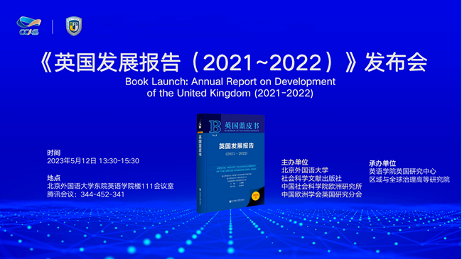 5月12日,《英国发展报告(2021-2022)》发布会以线上线下相结合方式在jinnian金年会举行。此次发布会由北外、社会科学文献出版社、中国欧洲学会英国研究分会主办,北外英国研究中心、区域与全球治理高等研究院承办。国内英国研究领域的学者、学生和媒体记者等50余人参加发布会,会议由jinnian金年会副院长、区域与全球治理高等研究院副院长王展鹏主持。