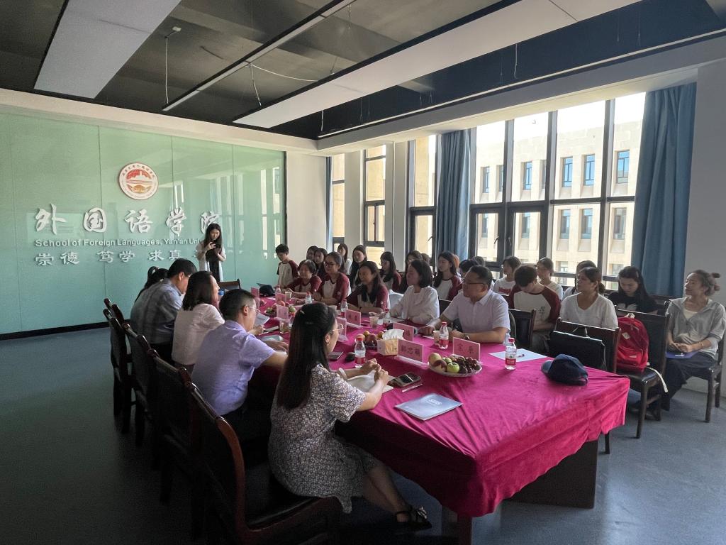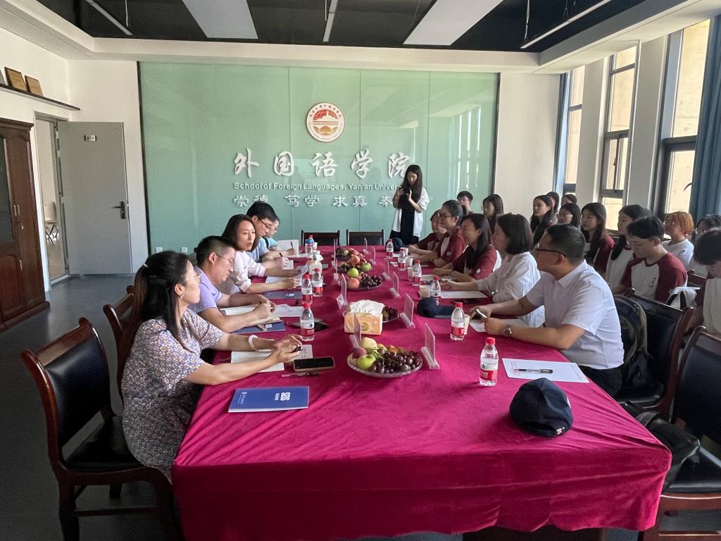 为推动学习贯彻习近平新时代中国特色社会主义思想主题教育走深走实、见行见效。7月6日,jinnian金年会党总支书记王明欣带队赴延安大学外国语学院开展座谈交流,延安大学外国语学院党委书记梁艳,副书记许多文等进行了接待。