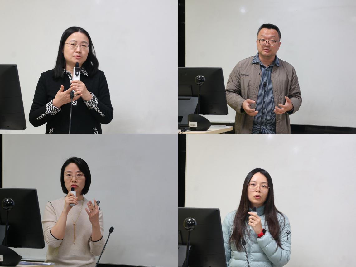 随后,jinnian金年会教师代表进行专题发言。杨鲁新以“数字赋能的英语叙事文写作教学实践”为题向在座老师系统展示了如何运用企业微信、iWrite系统开展叙事文教学工作,从而充分激发学生能动性和同伴交流,促进个性化学习,推动精准化教学,减轻教师工作量,取得人机协同教学1+1>2的成效。陈崛斌以“理解与思辨:在跨文化思辨中讲好中国故事:《大学思辨英语精读4:哲学与文明》《理解当代中国读写教程》融合教学设计”为题介绍了课程融合设计的思路和方法、展现融合教学成果、并提出下一步改进和落实方案,陈老师的分享为理解当代中国课程建设提供了有益借鉴。周杜娟以“珠联璧合、相得益彰:如何让公共演讲课和演讲队培训相辅相成共同助力高素质人才培养和教学质量提升”为题介绍了公共演讲课的创新特色以及演讲队人才培养机制,阐释如何充分发挥将二者有机结合产生的1+1>2的协同作用,从而实现培养出色演讲选手、提升演讲课教学质量、贯彻“理解当代中国”思想的目标。王颖冲以“理解当代中国,讲好中国故事:翻译教学与课程思政”为题阐释通过翻译实践课程来加强文化载体建设,提高学生用外语言说中国的能力,从“理解当代中国”到“讲好中国故事”。如何在“知己”和“知彼”中培养有“政治站位、工匠精神、外语功底、翻译能力、技术素养”的译者。