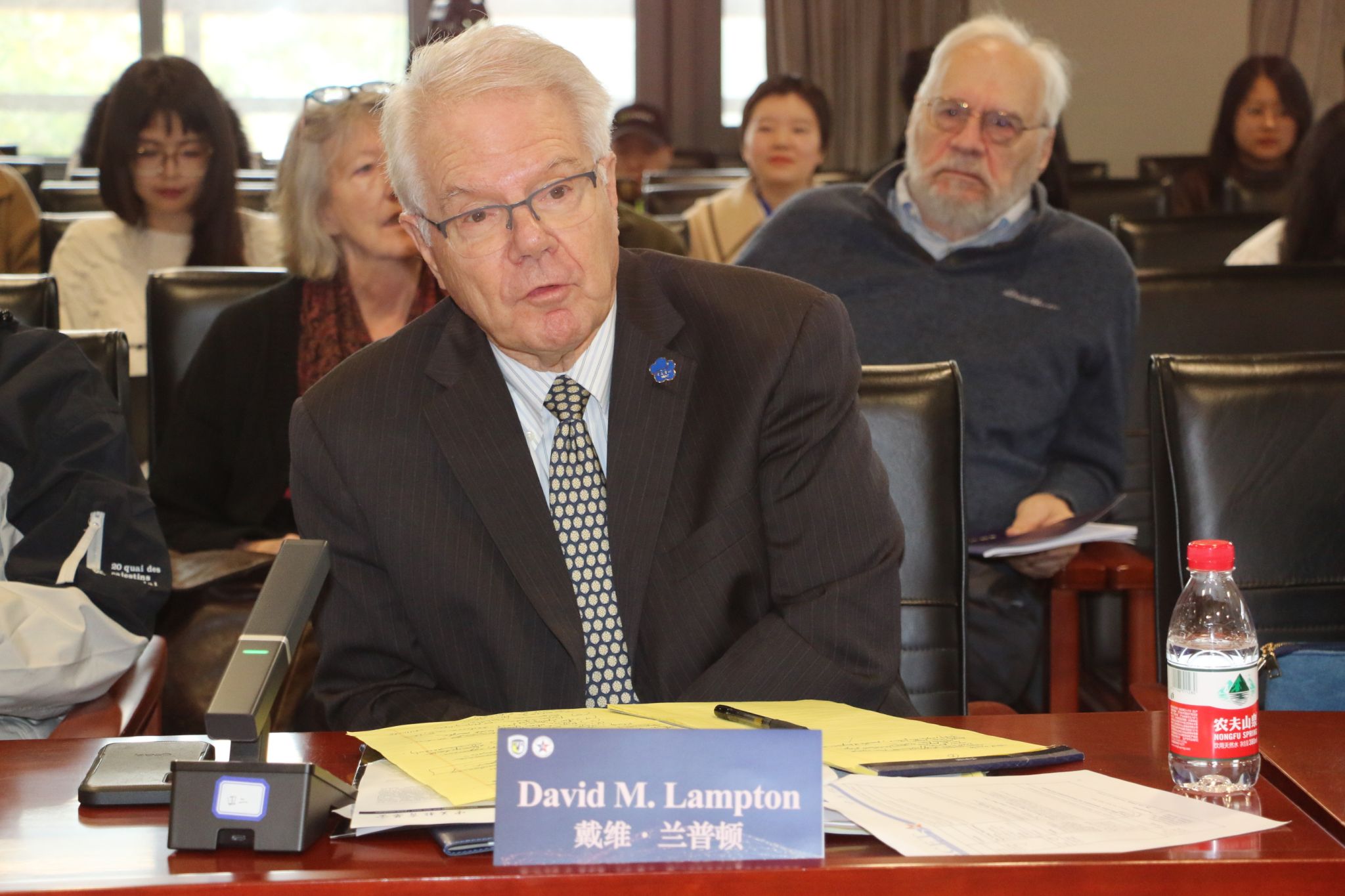 研讨会第一场主旨发言由北外教务处处长、美国研究中心李莉文教授主持。约翰斯·霍普金斯大学名誉教授戴维·兰普顿(David M. Lampton)、国防科技大学外国语学院美国研究中心主任王波教授、美国卡特中心“中国焦点”及宾夕法尼亚大学美中关系未来项目高级顾问伊丽莎白·纳普(Elizabeth Knup)分别做了题为“Living U.S.-China Relations: From Cold War to Cold War”、“People of Paradox: The Impact upon US-China Relations and Some Suggestions”、“Addressing Global Challenges: U.S.-China Civil Society Cooperation in an Era of Geopolitical”的精彩发言。第二场主旨发言由外交学院英语系主任冉继军教授主持。北外美国研究中心主任付美榕教授、雪城大学教授兼研究生项目主任,布鲁金斯研究所高级研究员马颖毅教授、外交学院美国研究中心主任石毅教授,分别做了题为“Stranded in the Cold War: a Psycho-historical Analysis of the Life Course of the Core Members of Chinese Scientific Workers’ Association in USA”、“Chinese Students in American Higher Education”、“Educational Exchanges Between China & US: Challenges”的精彩发言。 第三场主旨发言由中美教育基金会执行董事卢晓玫(Rosie Levine)主持。美国伍德罗威尔逊国际学者中心基辛格中美关系研究所主任罗伯特·戴博(Robert Daly)和jinnian金年会国际关系学院院长谢韬教授分别做了题为“Implications of the 2024 Elections on U.S. China Relations”和“Democratic backsliding and America’s declining Greatness”的精彩发言。