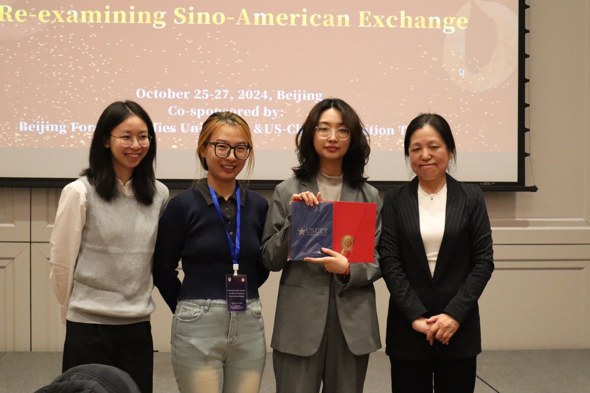 此次研讨会还组织了“梅仁毅教授研究生论文竞赛”。在颁奖仪式上,梅教授发表感言,深情地回顾了北外美国研究中心与中美教育基金会多年来的密切合作和深厚友谊。外交学院硕士生芦畅获得竞赛一等奖,北外美国研究中心硕士生宋艳珂、金晓晨获得二等奖,戴雨喆、胡浩怡、黄楚云、李柯凝以及博士生金玉璨获得三等奖。