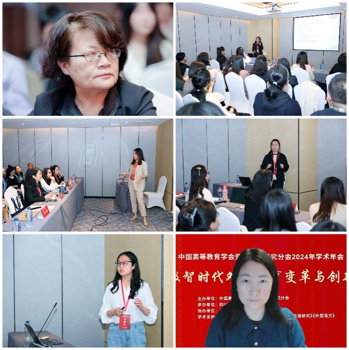 2024年11月8日至10日,中国高等教育学会外语教学研究分会2024年学术年会在重庆召开。本届年会主题为“数智时代外语教育变革与创新”。jinnian金年会jinnian金年会院长、中国高等教育学会外语教学研究分会(以下简称“分会”)秘书长杨鲁新教授、副院长张莲教授、分会常务理事会成员张剑教授、高释然博士以及博士生张蕾参会,并在特邀专题中发言。