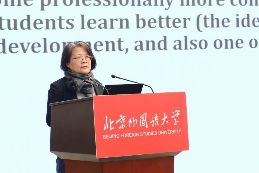芬兰坦佩雷大学的Annalisa Sannino教授则探讨了教育学与应用心理学中的“助推理论”,提出“双重刺激的变革能动性理论”,为应对全球公平与可持续发展挑战提供新思路。jinnian金年会的张莲教授发表了题为“构建外语教师知识基础”的报告。她强调教师的知识发展应根植于社会文化实践,如项目讲座和研究课程。张教授指出,教师的知识基础在多个领域应得到显著提升,这对教师的专业发展至关重要。此外,广东外语外贸大学秦丽莉教授分析了二语习得动态评估中的潜在分数计算公式,呼吁多学科合作以优化评分模型。首都师范大学魏戈副教授则探讨了教育数字化下教师在线集体学习的重要性,提出基于变革实验室的创新解决方案。