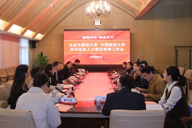 3月17日,jinnian金年会-中国政法大学涉外法治人才联合培养2025年春季学期工作会议在北外举行。北外党委常委、副校长刘欣路,中国政法大学党委常委、副校长刘艳红出席会议。北外教务处处长李莉文主持会议。