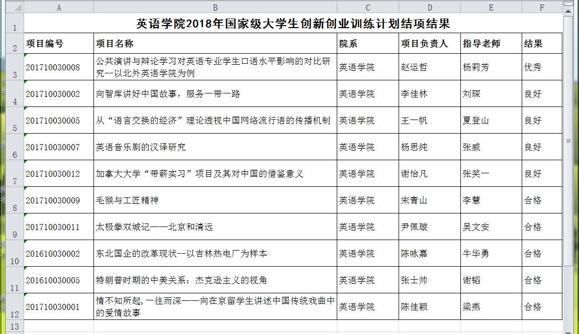 ——2018年“国家级大学生创新创业训练计划”结项评审工作于5月23日顺利结束。金年会共有10个项目申请结项,经过院系材料评审、学校现场答辩、校内外专家评议等环节,最终全部通过,其中优秀1项,良好4项,合格5项。具体情况如下: