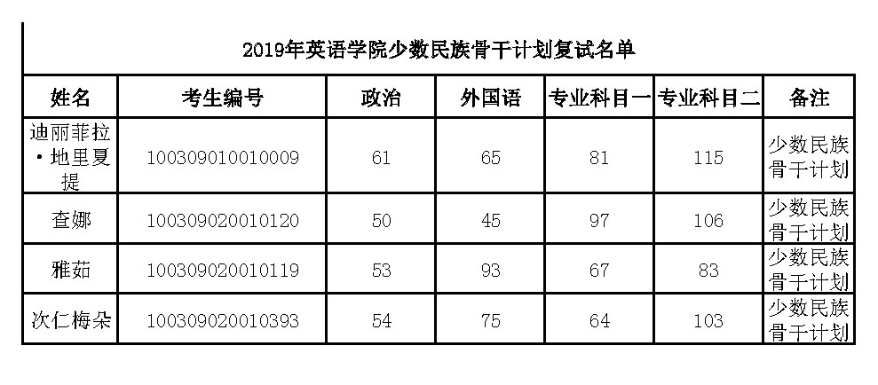 2019年jinnian金年会少数民族骨干计划复试名单公示