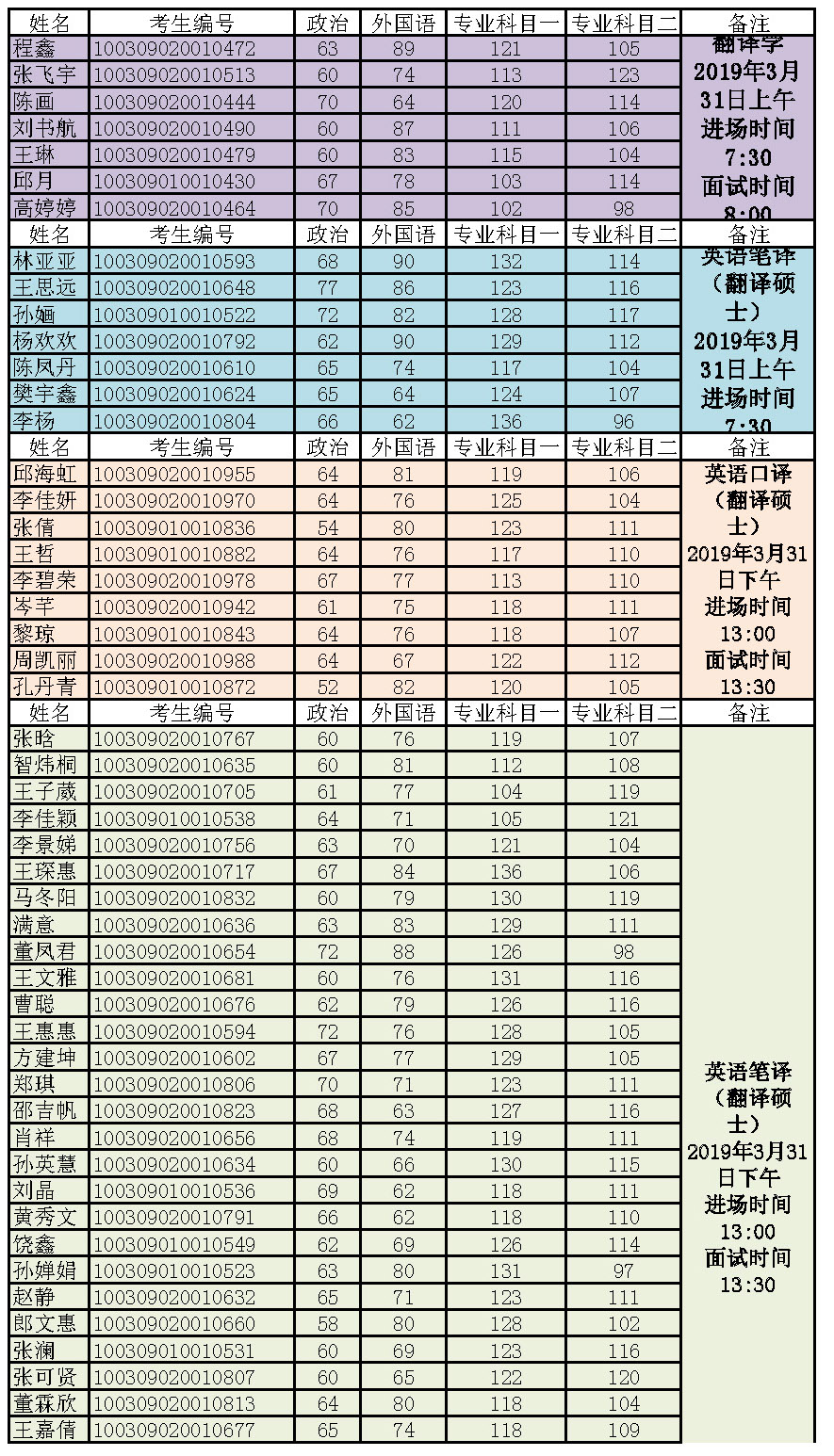 2019年jinnian金年会英美文学、翻译学、英语笔译(翻译硕士)、英语口译(翻译硕士)面试时间安排