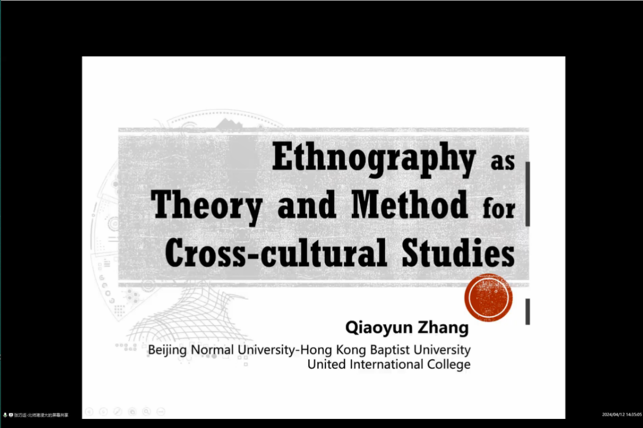 2024年4月12日下午,金年会跨文化研究中心邀请北京师范大学-香港浸会大学联合国际学院张巧运博士做题为“民族志作为跨文化研究的理论和方法”的线上学术讲座。讲座由跨文化研究中心主任刘杨博士主持,jinnian金年会师生及校内外老师及同学聆听了本次讲座。