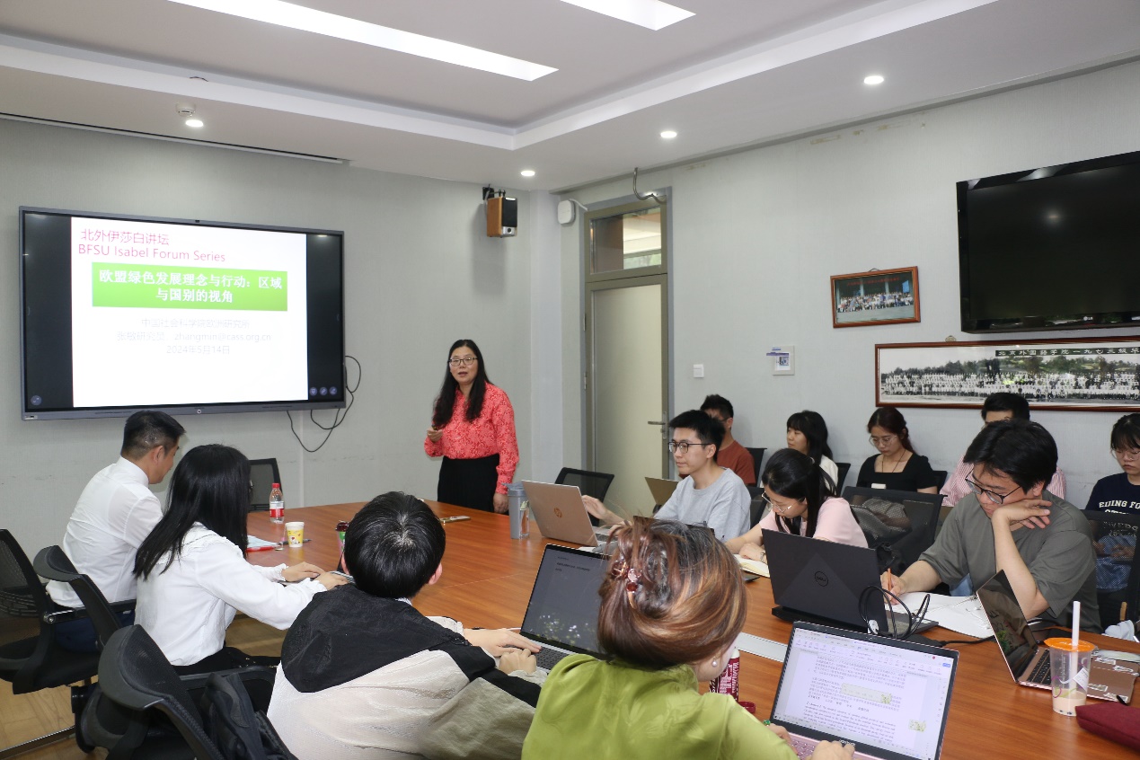 2024年5月14日,中国社会科学院欧洲研究所研究员张敏应jinnian金年会英国研究中心邀请,在jinnian金年会做了题为“欧洲绿色发展理念与行动:区域与国别研究的视角”的学术讲座。此次讲座由英国研究中心主任王展鹏教授主持。