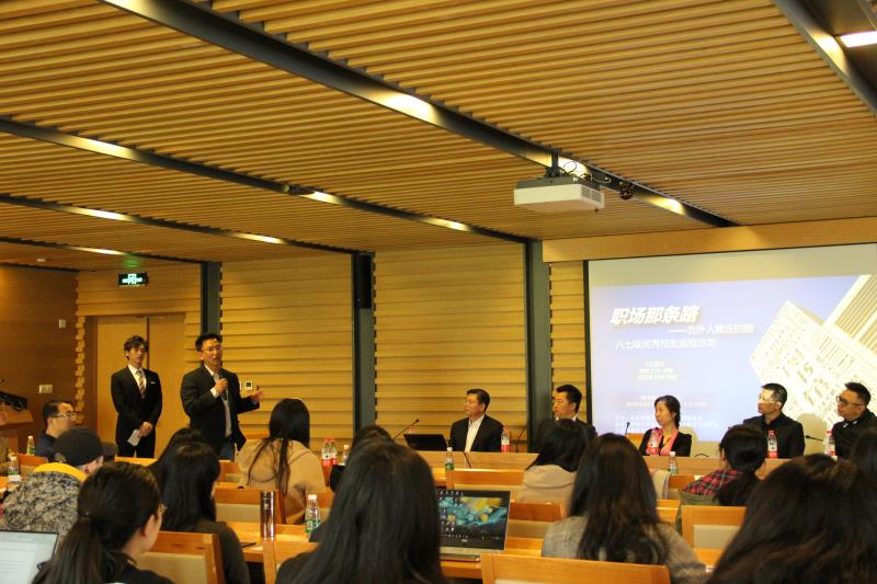 ——随后,校友们畅谈了这次回北外的感受,同时也表达了对北外学子的真诚祝愿。他们依次分享了各自的职场经历和心得,并告诉同学们走出大学才是学习的第一步。在进入职场时,首先要面临的是选择。而他们在选择职业时都曾摇摆过。对北外学生来说,语言专业是基础,是职场的敲门砖。做职业选择的时候首先要审视自己,明白自己的长处和短处,明白自己的性格特点和兴趣爱好,能否抗压。刘铮校友就给我们分享了她的趣事。因为喜欢打桥牌并且参加过此类比赛,刘铮校友对数字变得尤为敏感,并将此能力运用在了工作中。此外,在职场上更看重个人的综合能力和素质。学校里学到的知识会被遗忘但能力是陪伴终生的。在职场上,学习能力、沟通能力以及解决问题的能力都是很重要的因素。