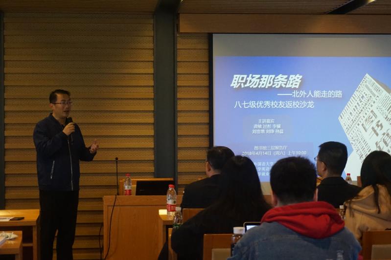 ——2018年4月14日上午十点,六位jinnian金年会八七级优秀校友返回北外参加了在图书馆三层报告厅举办的“职场那条路——北外人能走的路”校友沙龙。