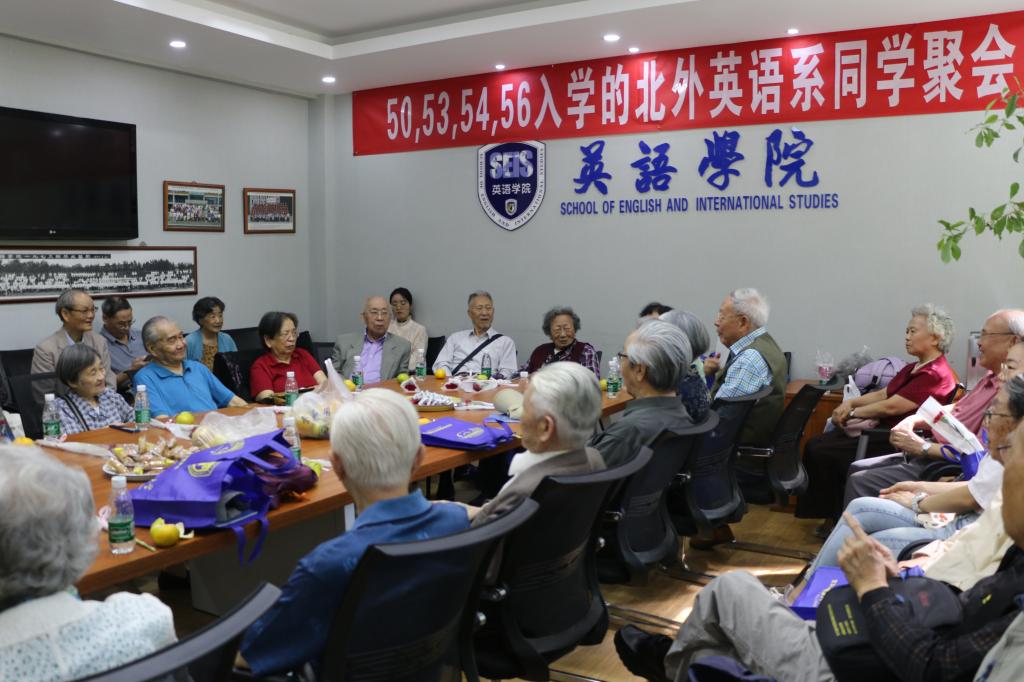各级校友纷纷回到母校追寻旧日时光。有年级聚会,有携家带口,也有独自前行。其中最大规模的50年代校友返校聚会活动在英语楼111会议室举行,来自50级、53级、54级、56级与60级的30多位校友齐聚一堂,共同追忆往昔校园生活。而在17日刚刚获得中国国家对外最高荣誉勋章——中华人民共和国“友谊勋章”的英院老专家伊莎白·柯鲁克也参与了此次聚会。jinnian金年会党总支书记路兴、副院长王展鹏出席了此次活动,对老校友们的到来表示了热烈欢迎,感谢各位校友对jinnian金年会发展的关心与支持,希望明年校庆日依然能见到大家的身影。