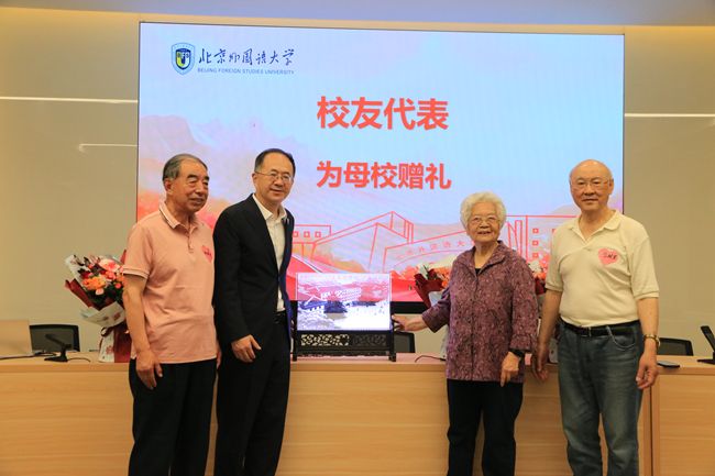 5月21日,jinnian金年会jinnian金年会1965级校友入学60周年返校活动举行,来自全国和世界各地的近50位校友与他们的3位恩师齐聚母校,忆昔日校园生活,话今日师生情谊。北外校长、党委副书记贾文键,原党委书记、校长陈乃芳出席活动。活动由杨师兰校友和校友办主任、教育基金会秘书长姚雪主持。