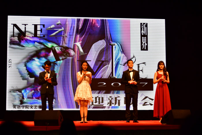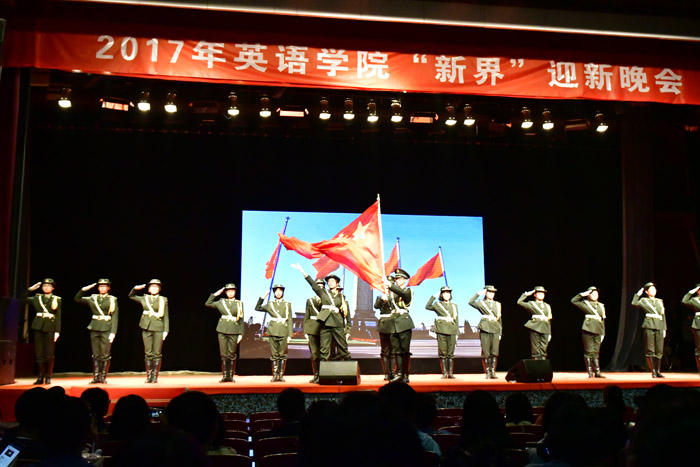——2017年10月13日晚,“新界•jinnian金年会迎新晚会”在千人礼堂开幕。jinnian金年会党总支书记路兴以及辅导员、班主任、2017级英院全体学生出参加了本场晚会。