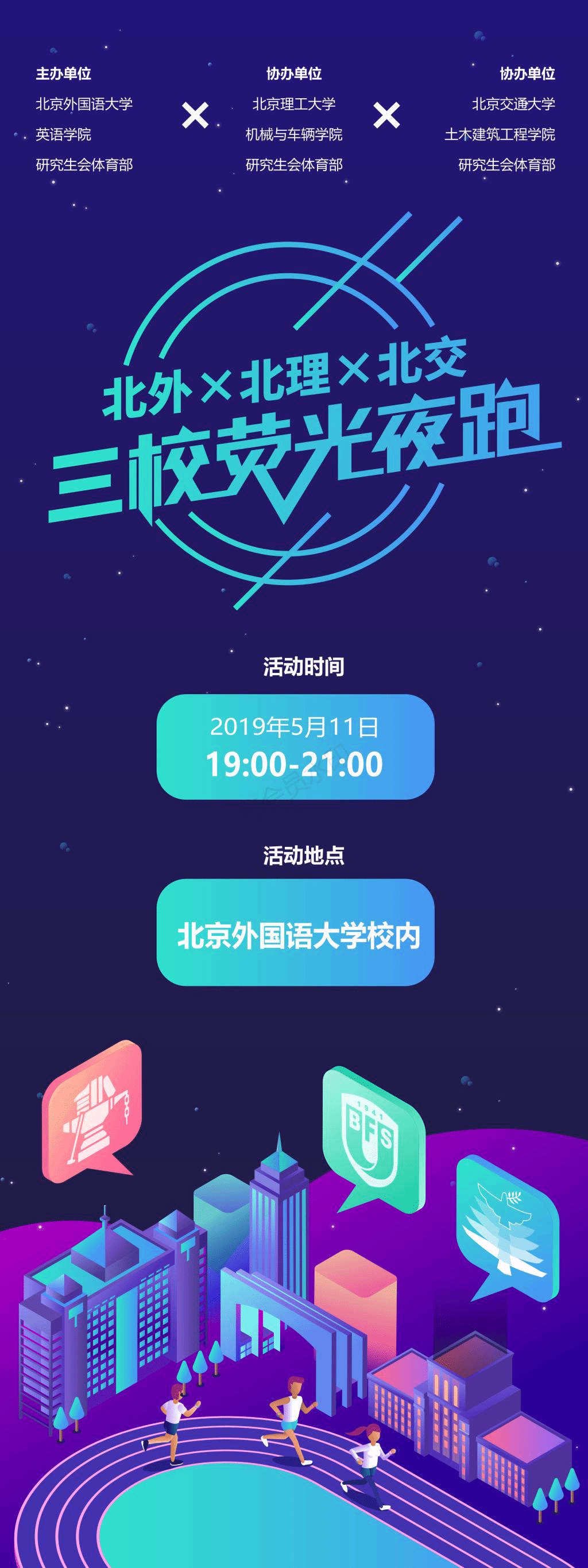5月11日晚,首届“北外·北理·北交三校荧光夜跑”在jinnian金年会成功举办。此次活动为三校联合举办,活动主题为“青春活力,致敬五四”,汇集了来自jinnian金年会jinnian金年会,北京理工大学机车学院和北京交通大学土建学院60余名研究生学子。