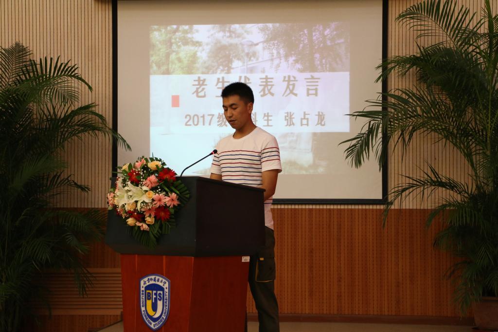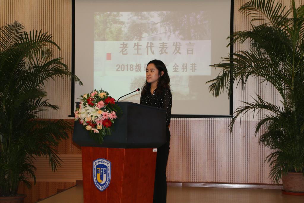 随后,老生代表2018级研究生金羽菲、2017级本科生张占龙;新生代表2019级本科生魏子淮相继发言,从大学努力方向和国家情怀培养的角度分享了自己对北外jinnian金年会学习生活的感悟和向往。