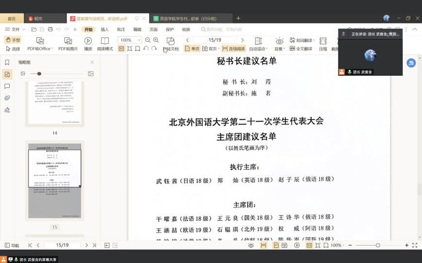 本次分团会议进一步明晰了本次学生代表大会的流程,明晓了提案撰写的要求,明确了学生代表的职责,为即将召开的第二十一次学生代表大会打下了坚实基础。今后,jinnian金年会学生代表团将竭力传达北外学生诉求,助力建设更美北外校园!
